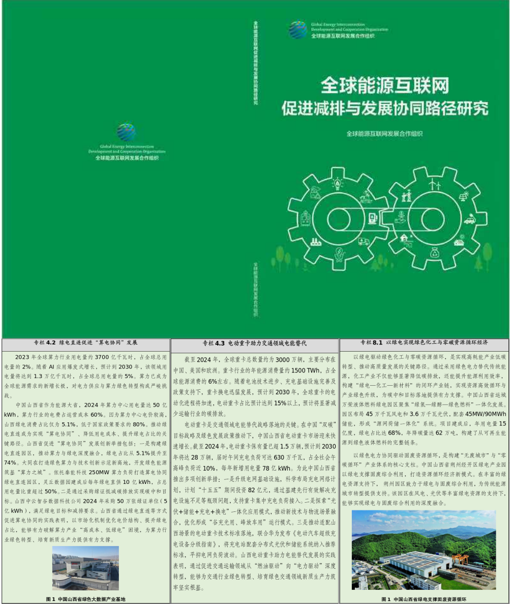 第一項(xiàng)案例是綠電直連促進(jìn)算電協(xié)同發(fā)展案例。其描述的是通過(guò)構(gòu)建綠電直連園區(qū),推動(dòng)算力與綠電深度融合,將綠電占比從5.1%提升至74%,有力破解算力產(chǎn)業(yè)“高成本、低綠電”困境。第二項(xiàng)案例是電動(dòng)重卡助力交通領(lǐng)域電能替代案例。其描述的是通過(guò)升級(jí)電網(wǎng)基礎(chǔ)設(shè)施、探索“光伏+儲(chǔ)能+充電+換電”一體化應(yīng)用模式,能夠?yàn)榻煌ㄐ袠I(yè)綠色轉(zhuǎn)型筑牢堅(jiān)實(shí)根基。第三項(xiàng)案例是綠色化工與零碳資源循環(huán)經(jīng)濟(jì)案例。其描述的內(nèi)容包括兩項(xiàng),一是運(yùn)城萬(wàn)榮液體燃料綠電園區(qū)構(gòu)建從可再生能源到綠色液體燃料的完整鏈條,年降碳量達(dá)62萬(wàn)噸;二是朔州經(jīng)開(kāi)區(qū)綠電產(chǎn)業(yè)園以綠電支撐固廢綜合利用,打造資源循環(huán)經(jīng)濟(jì)新模式。