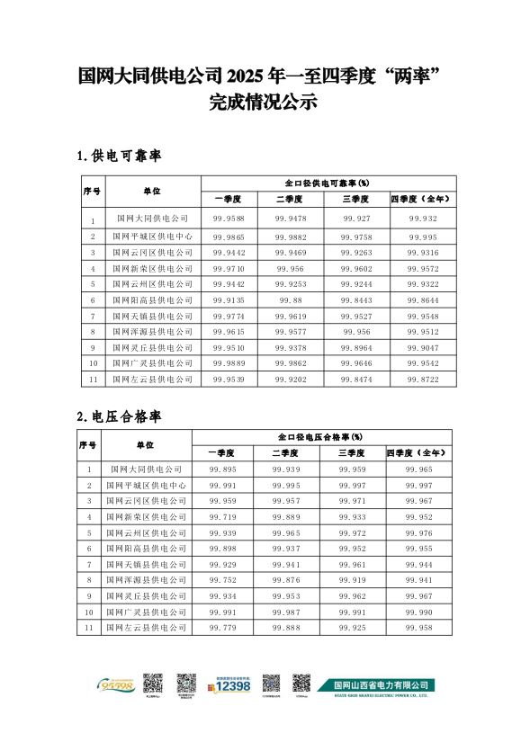 國(guó)網(wǎng)大同供電公司2025年四季度“兩率”完成情況